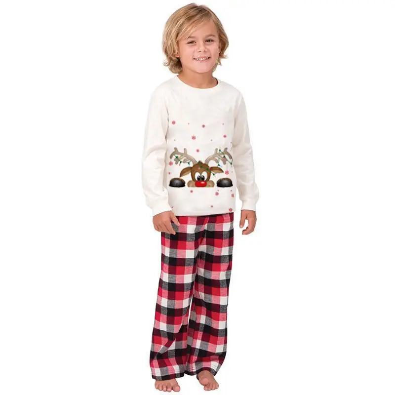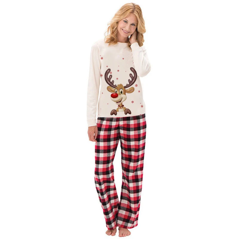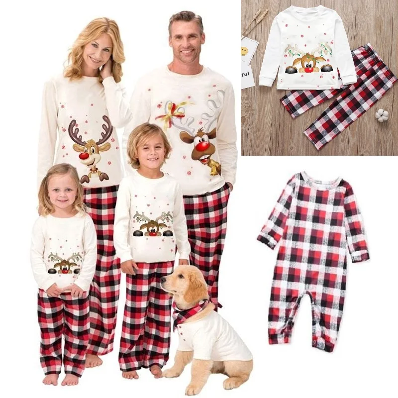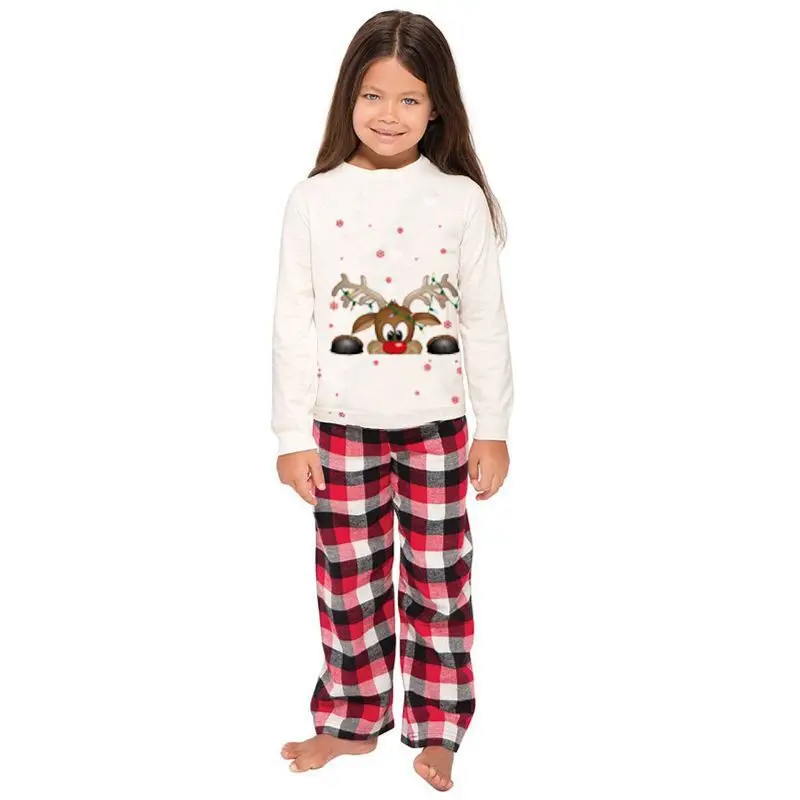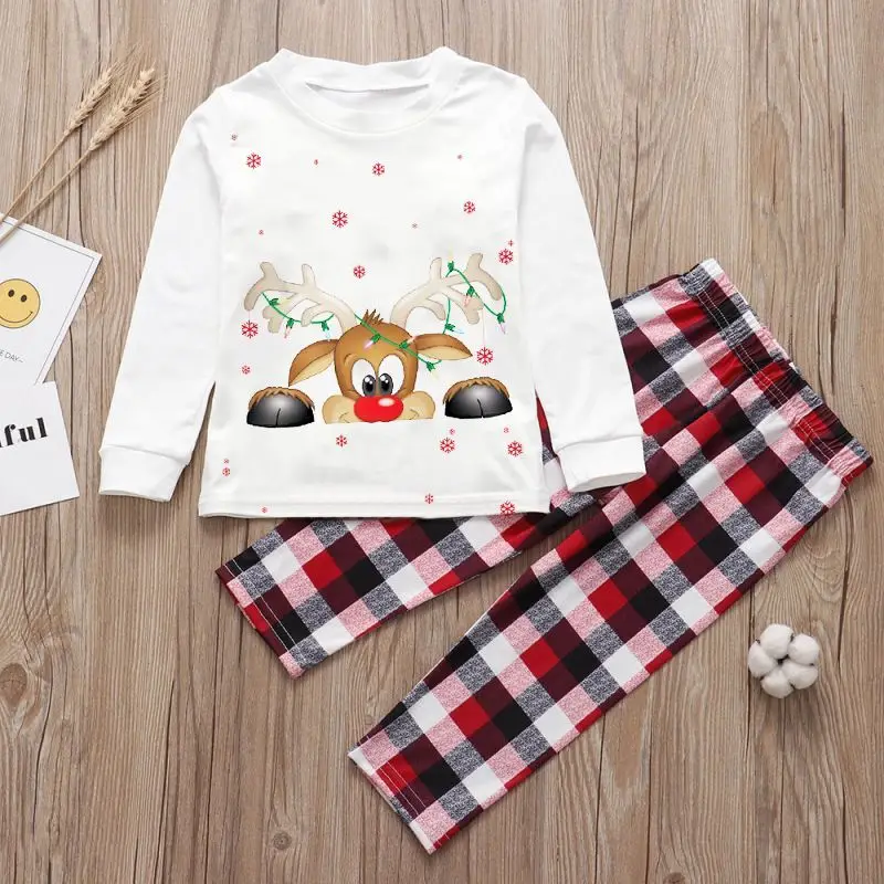 2021 г., семейная Рождественская Пижама, топ и штаны для взрослых и детей, Рождественская пижама с принтом оленя, длинная одежда для сна, комплект одежды