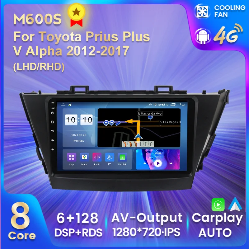 Автомобильный мультимедийный плеер IPS Android11 все в одном, интеллектуальная система для Toyota Prius Plus V Alpha 2012-2017, встроенный Carplay BT