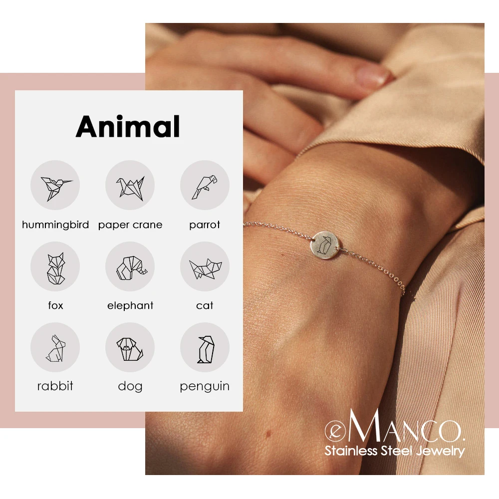 EManco 9 мм13 мм складной дизайн животное птица лиса браслет гравировка собака кошка Монета браслет 316L звеньевая цепь из нержавеющей стали женские ювелирные изделия