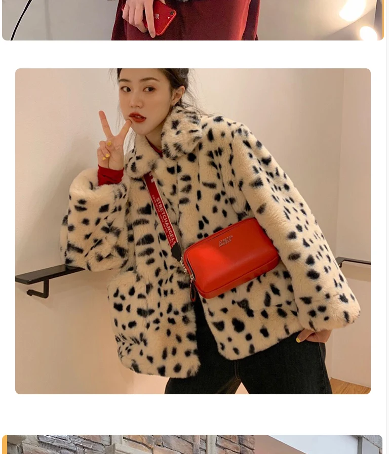 Женская куртка из овечьей шерсти, свободная короткая зимняя куртка из искусственного меха с леопардовым принтом, в Корейском стиле, 2021