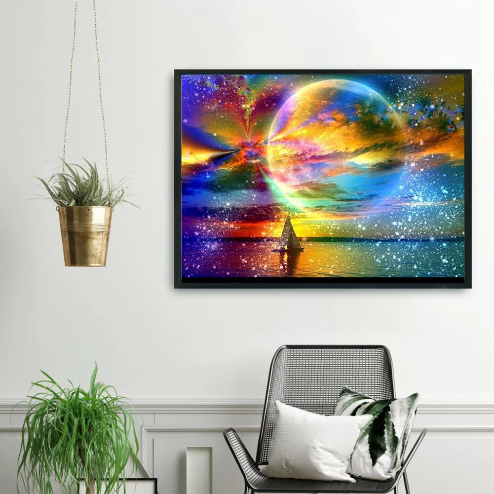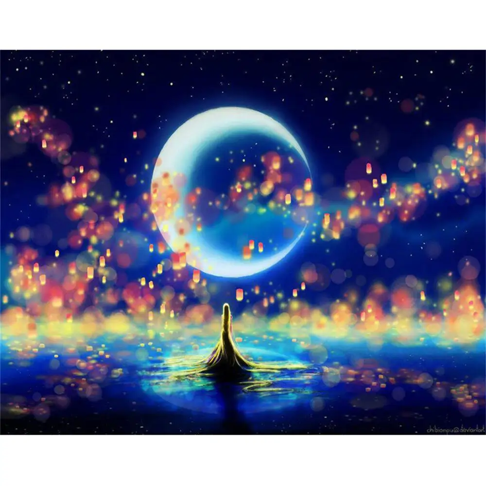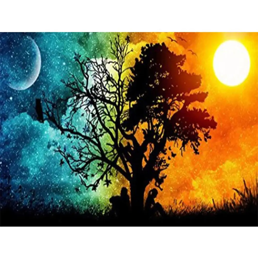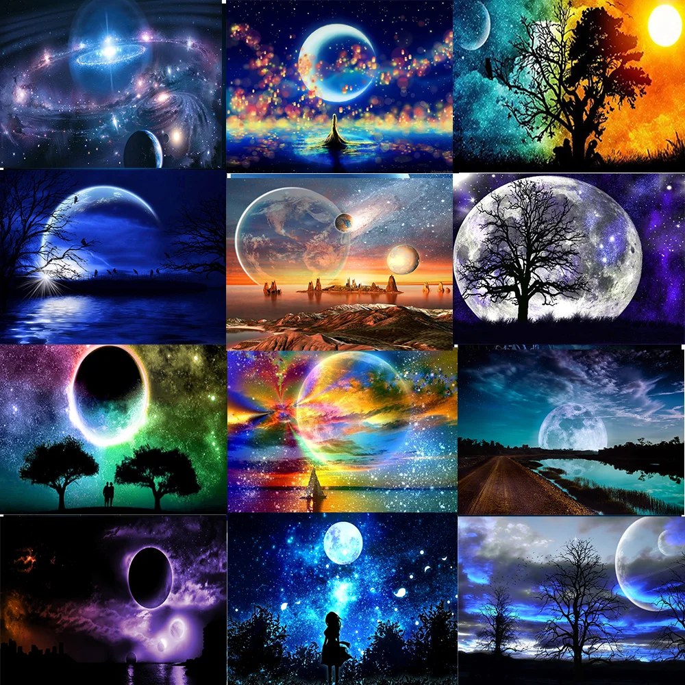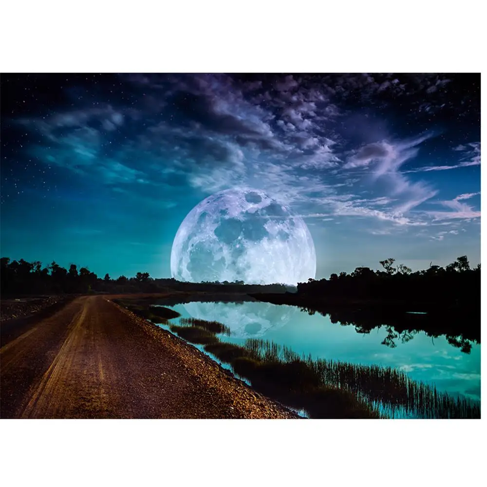 Алмазная 5d-картина сделай сам с изображением пейзажа, луны, ночного пейзажа, полная выкладка, алмазная вышивка, мозаика, луна, дерево, вышивка крестиком, украшение для дома