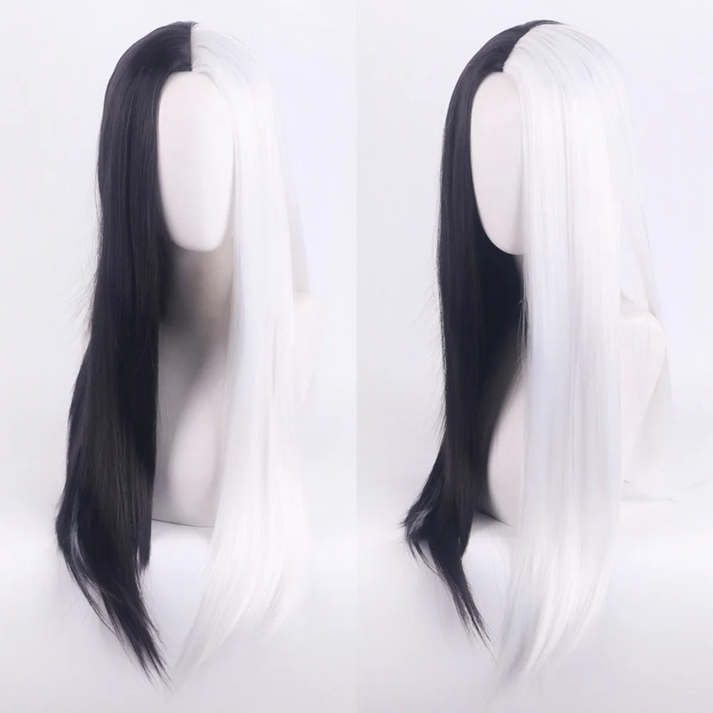 Костюм для косплея из аниме Cruella De Vil, термостойкий синтетический карнавальный костюм черного и белого цвета для Хэллоуина и шапочка с бесплатным париком, 101