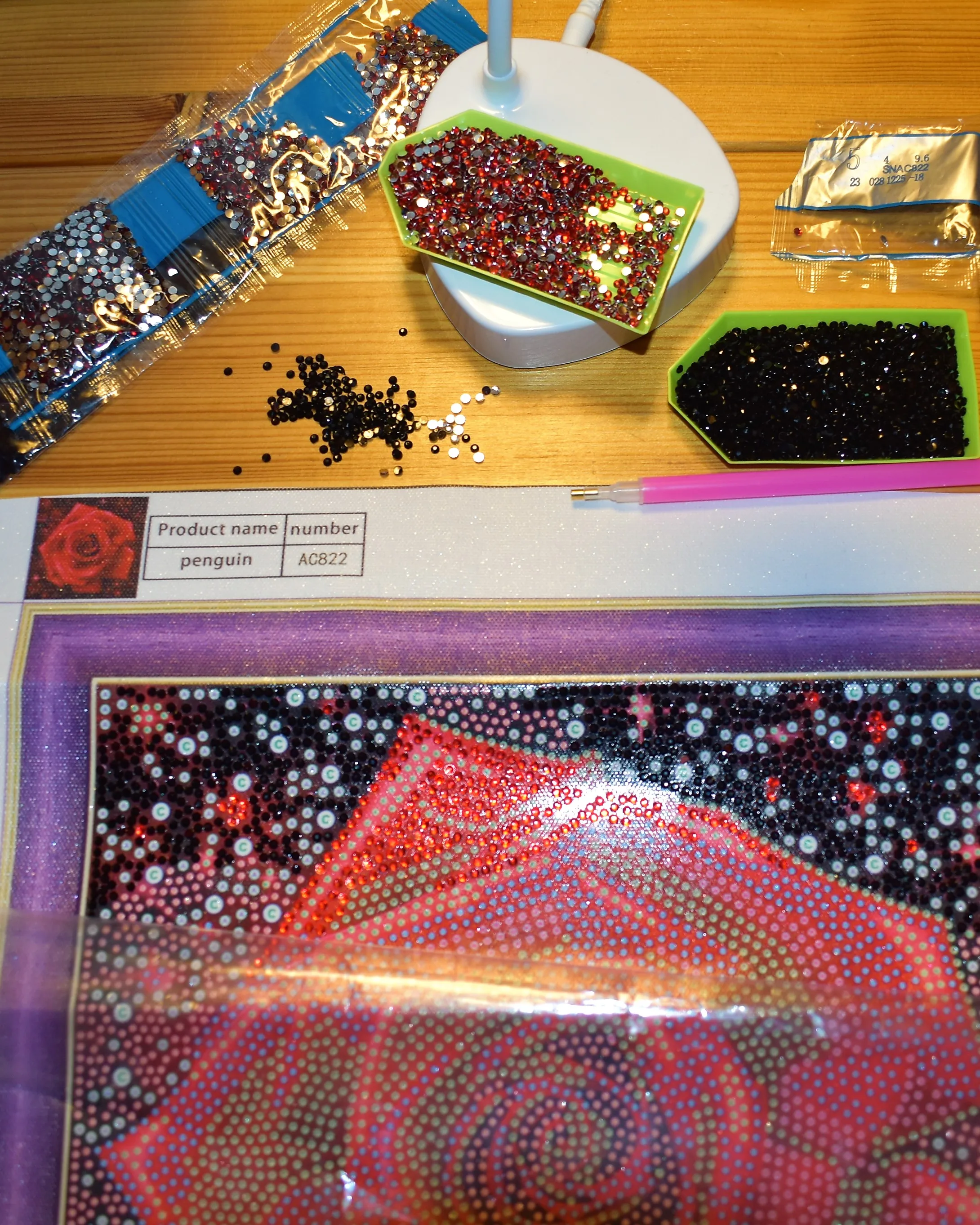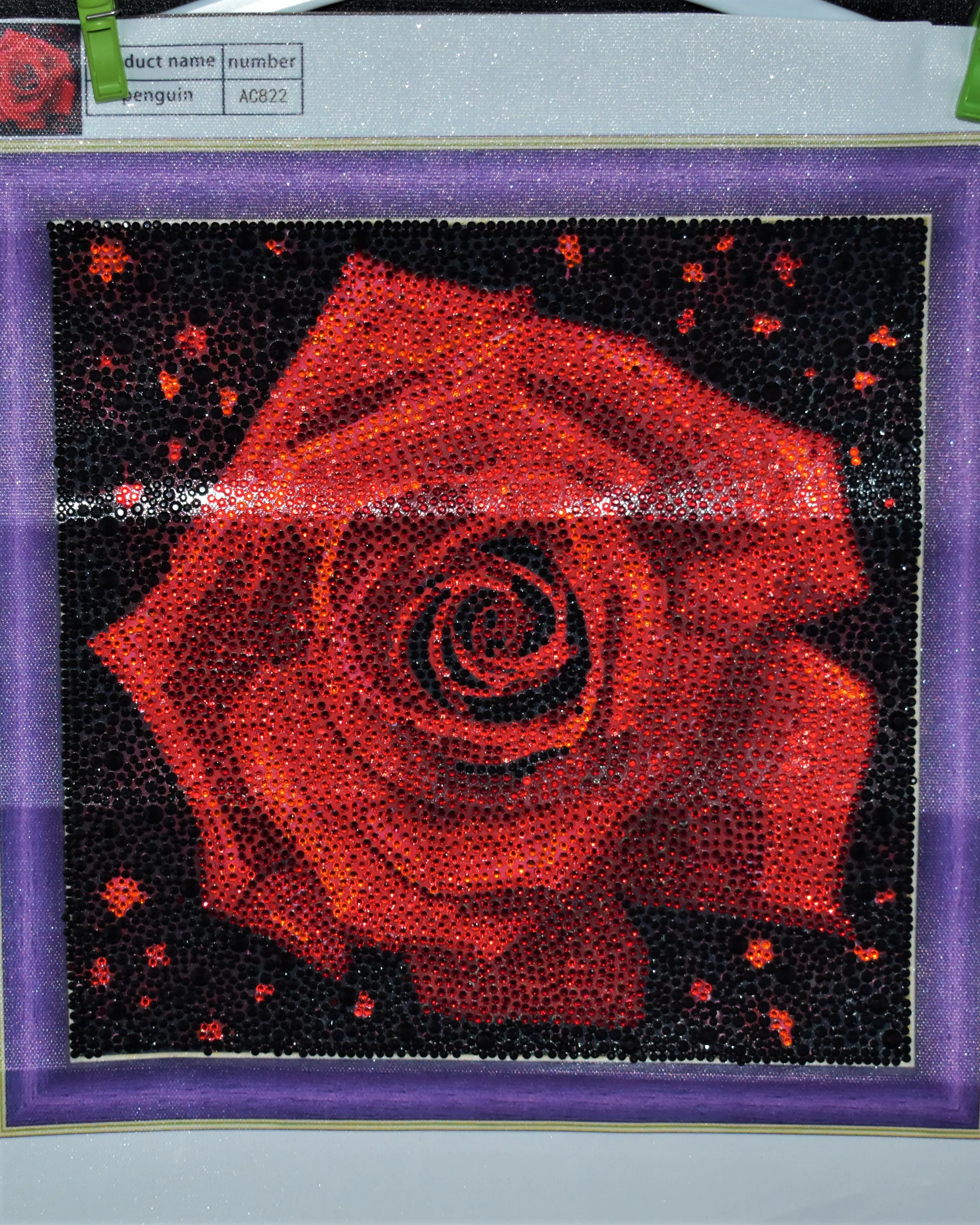 Картина получилась яркая и эффектная, мне очень нравится! Стразы блестящие круглые и разного размера. В комплекте: холст, пластиковые стразы в хрустящих лентах, стилус, лоток и кусочек воска для стилуса (помогает захватывать стразы) Картина с полным заполнением, но не плотным, если выкладывать строго по нанесённым отметкам, то остаются зазоры. Холст толстый с хорошей печатью картинки и разметки для выкладки страз. Клеевой слой покрывает холст полностью, очень липкий. Обозначения есть сбоку на холсте, бумажной распечатки нет, но она и не нужна. Для картины Роза 7 пакетиков страз. Чёрные стразы двух видов: маленькие и крупные. Пять других – разные оттенки красного. Стразы в комплекте с большим запасом, осталось много неиспользованных. При желании можно дополнительно добавить стразы в незакрытые промежутки. Результат мне понравился, картина красиво блестит. Спасибо.