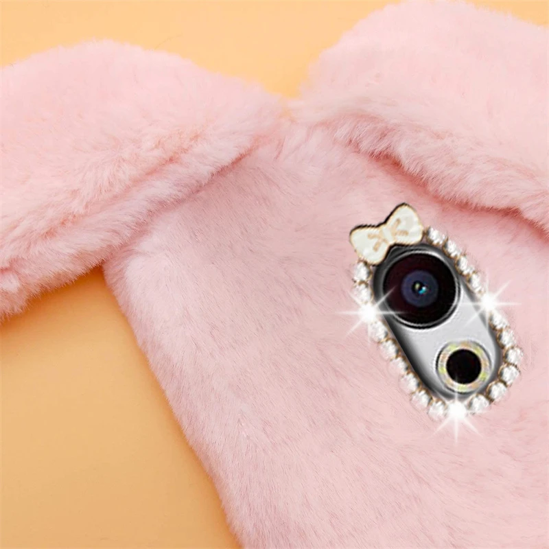 Блестящий бриллиантовый плюшевый чехол с кроличьими ушками для Sams...
