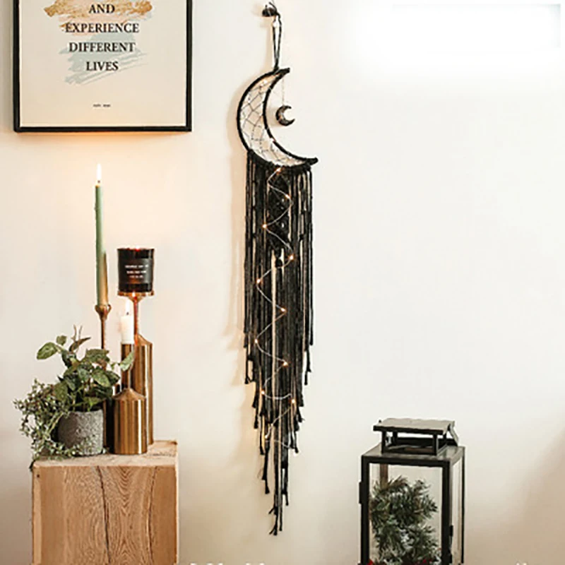 Черная луна Ловец снов хлопковая Веревка плетеная подвеска Украшение для темной комнаты ветряные колокольчики украшения для дома украшение для стены комнаты
