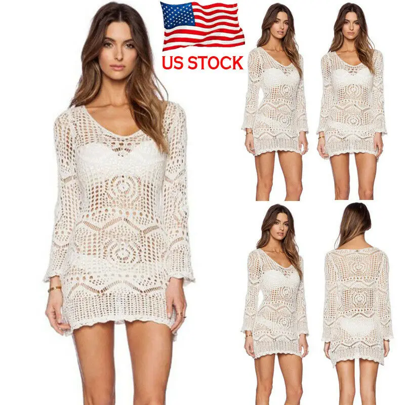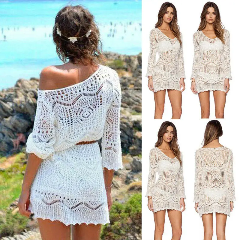 Сексуальное женское кружевное платье кроше, летнее пляжное платье м...