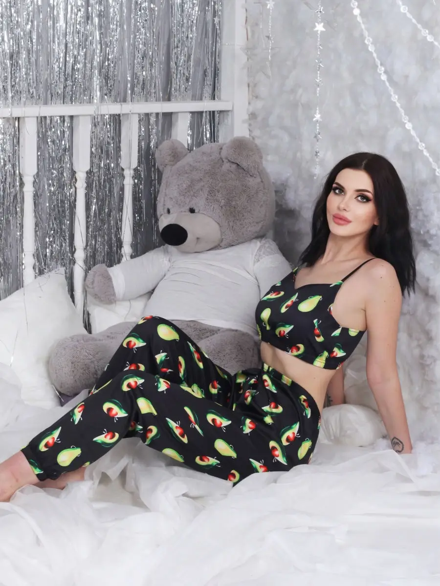 Домашняя одежда для женщин, бюстгальтер, пикантная пижама с принтом...