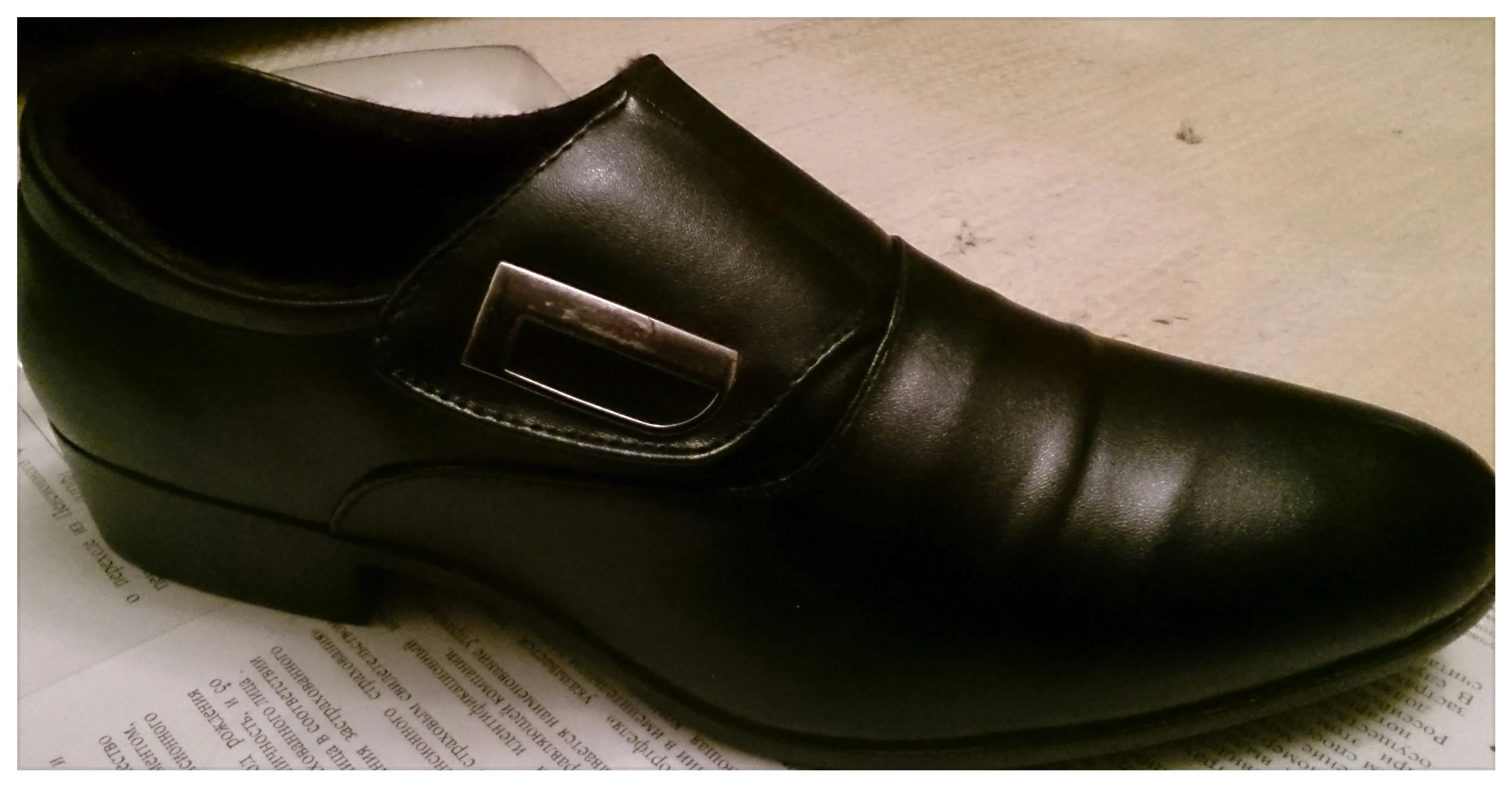Туфли неплохие, но есть нюансы. Заострённый носок увеличивает свободное пространство в мысу. При этом нельзя сказать, что туфли велики. По ширине они в самый раз. Но так как у меня широкая стопа с косточкой у большого пальца, узкий носок мне не подходит. И по длине такая форма не для меня. Но всё таки я их оставил. Или продам, или буду носить.