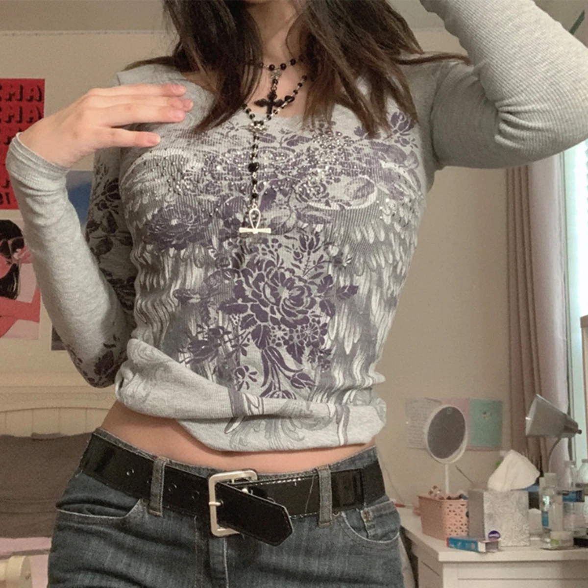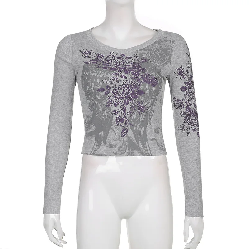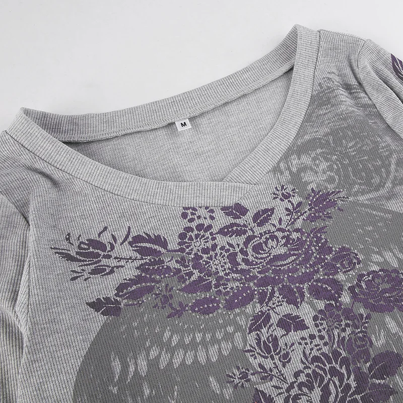 Ретро гранж футболки Fairycore Harajuku графический принт серые милые повседневные футболки уличная одежда темные академические Топы шикарные