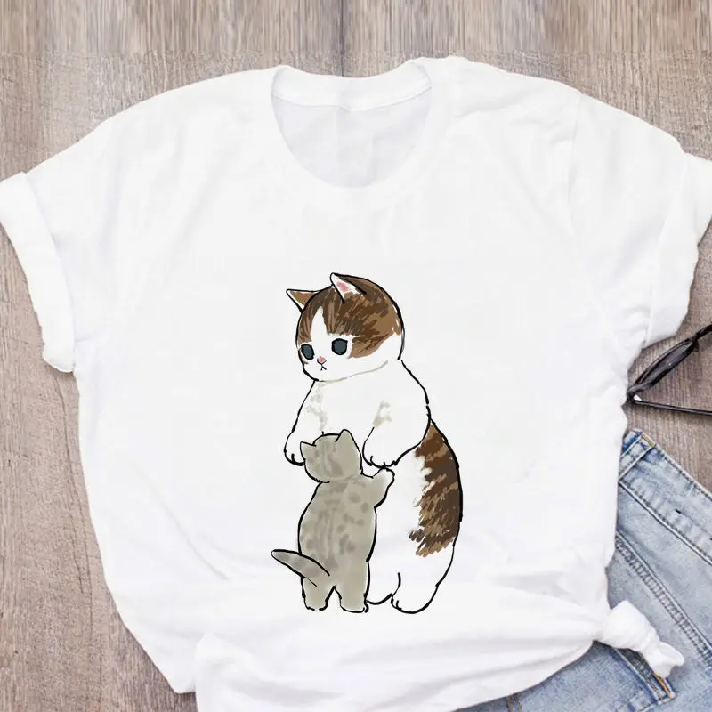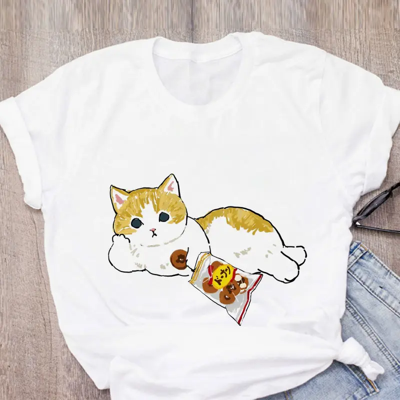 Женская футболка с милым котом, забавная мультяшная футболка в стиле Харадзюку, футболка с графическим принтом ольччан, футболка 90-х годов, Модный женский топ в эстетике