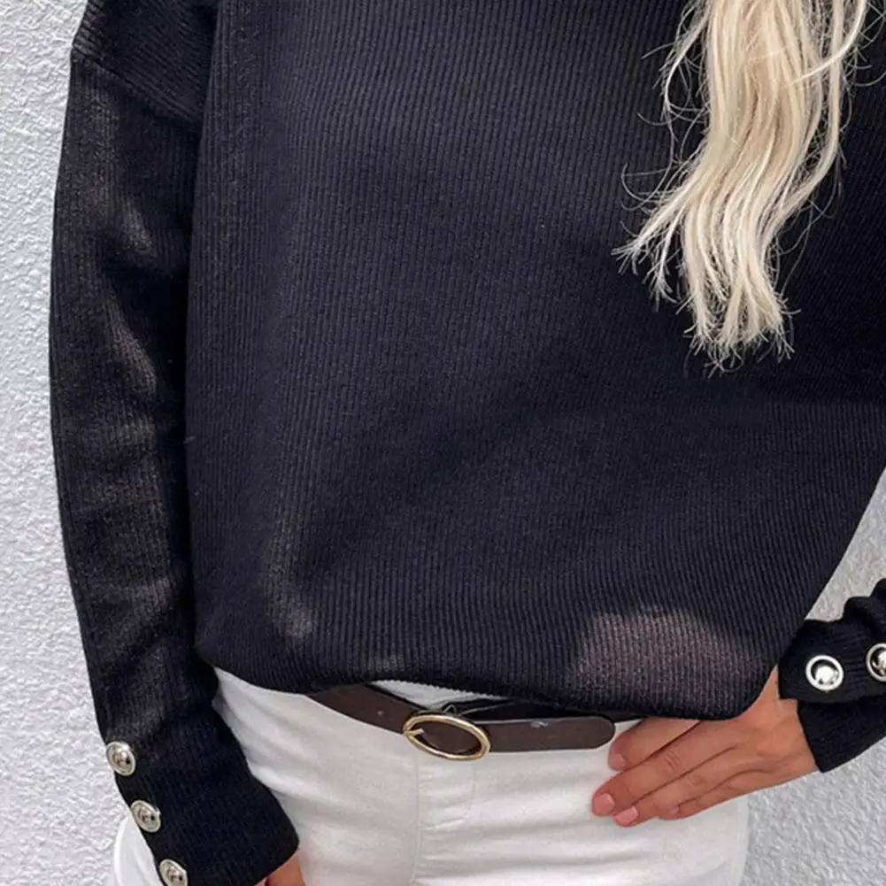 Женский трикотажный свитер, Однотонный свитер с длинным рукавом, воротником-хомутом и манжетами, пуловер для осени и зимы
