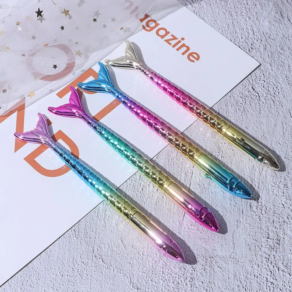 Школьные принадлежности, милые канцелярские гелевые ручки с сыпучим песком, градиентные цветные нейтральные ручки в форме русалки