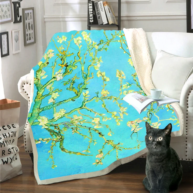 Одеяло с рисунком Ван Гога Звезда Луна, флисовое покрывало для дивана, мягкое теплое постельное белье из кораллового флиса, плюшевое покрывало, подарок для детей