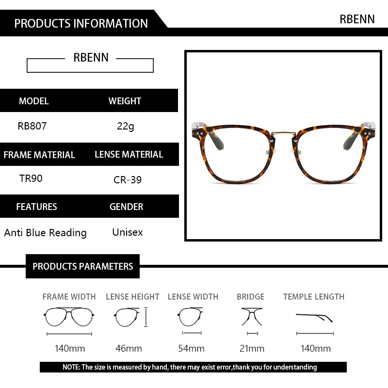 RBENN квадратная большая рама компьютерные очки для чтения с защито...