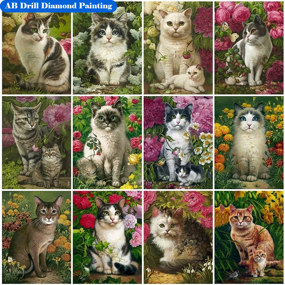 Алмазная вышивка AB, кошка, цветок, полный квадраткруглый 5D, сделай сам, вышивка крестиком, искусственное животное, узор, домашний декор, подарки