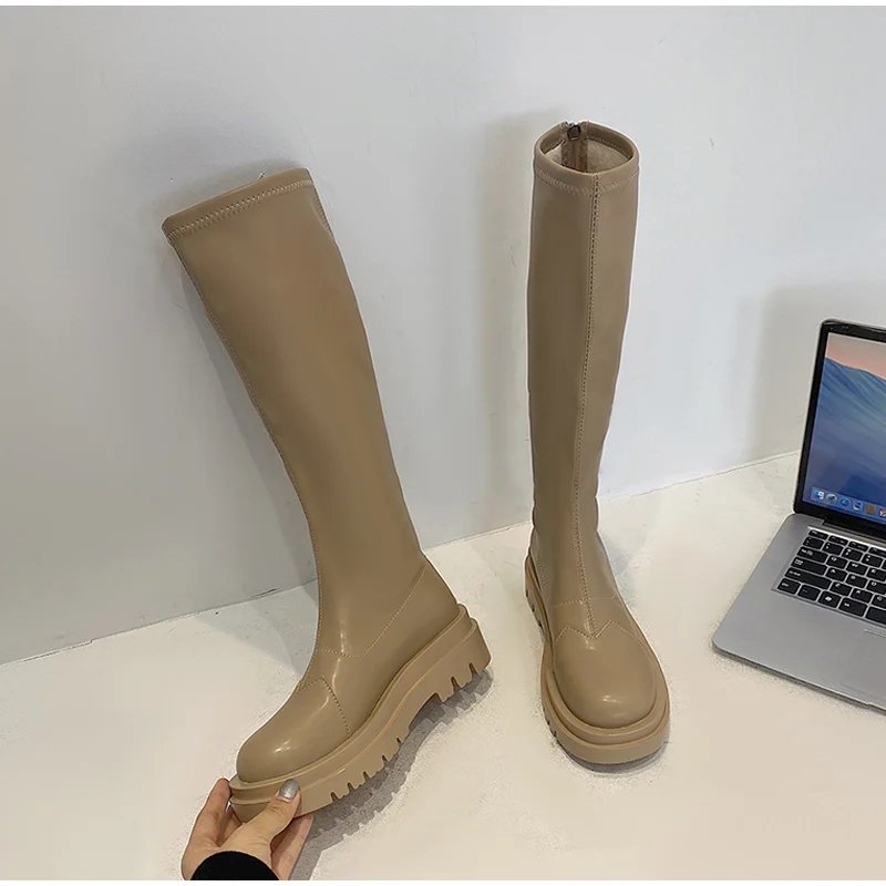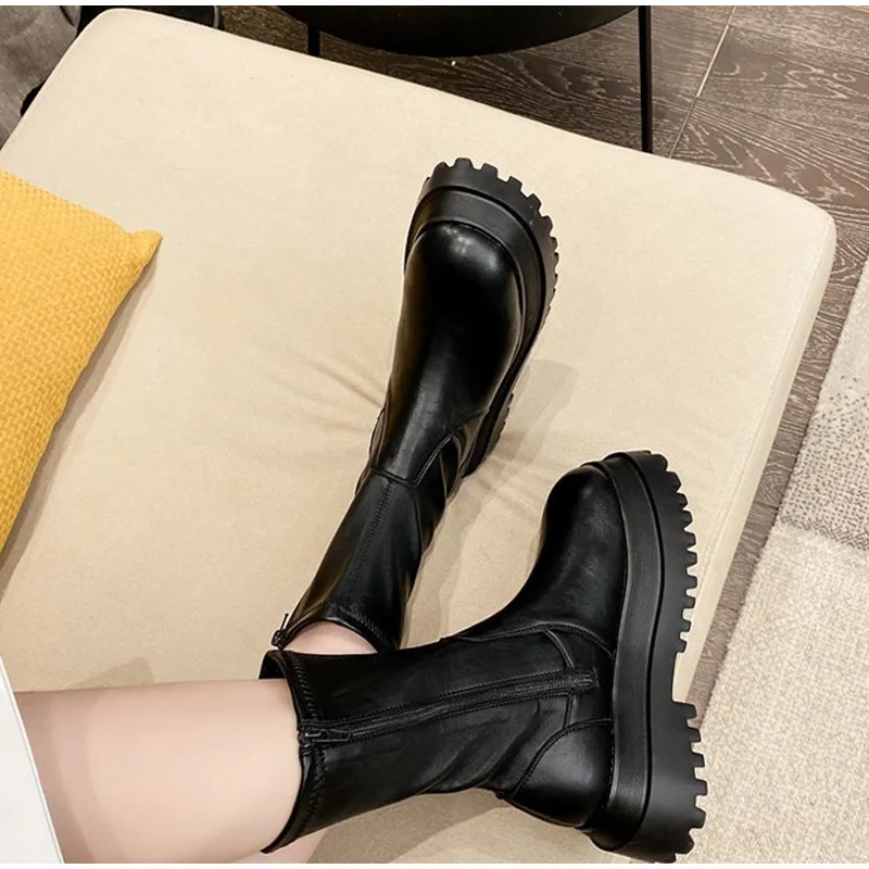 Женские сапоги Челси на платформе, женская кожаная обувь, женские сапоги на толстой подошве, сапоги до колена, зимние высокие сапоги до бедра, Новинка icon star icon star icon star icon star icon star