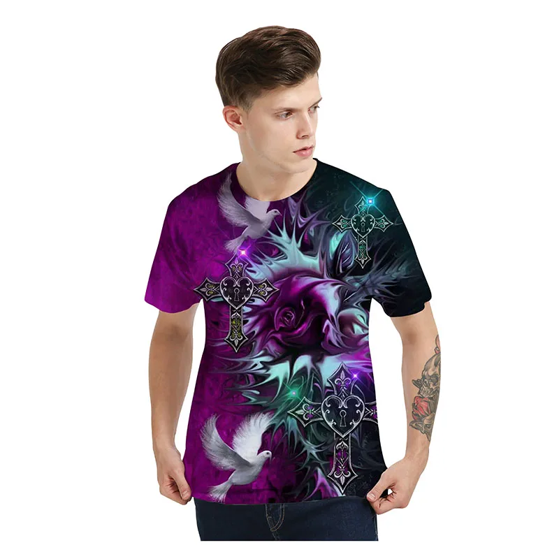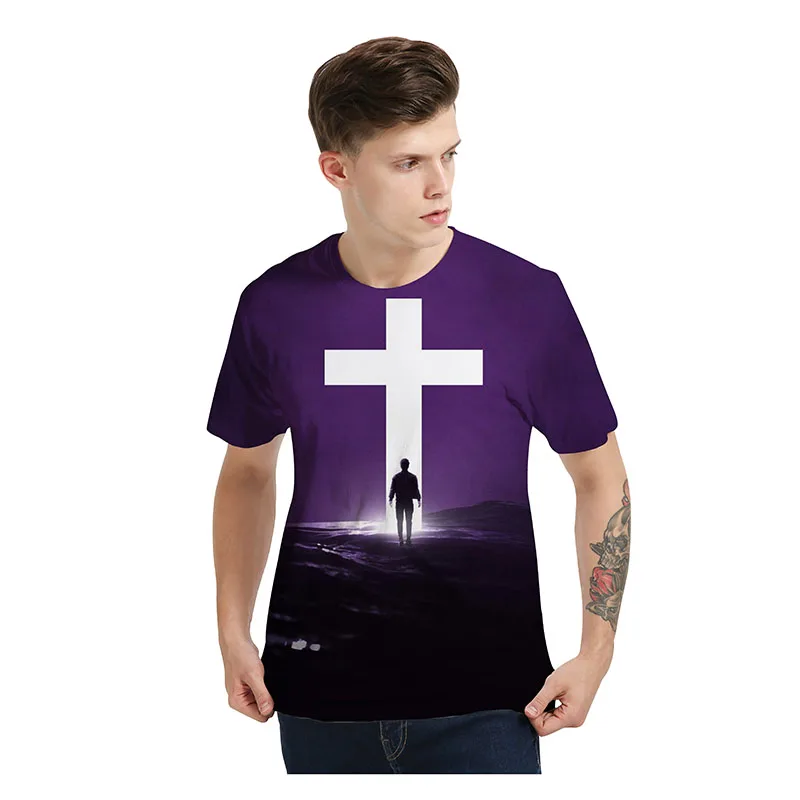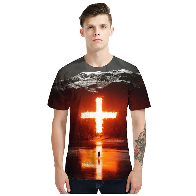 Футболка мужская с круглым вырезом, модная повседневная тенниска с 3D-принтом Креста, с изображением Иисуса, майка в христианском стиле с короткими рукавами, лето 2021