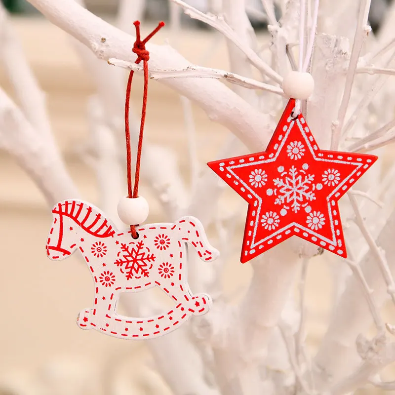 Рождественские деревянные подвесные бирки, рождественские украшения из красной древесины