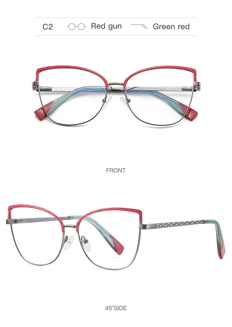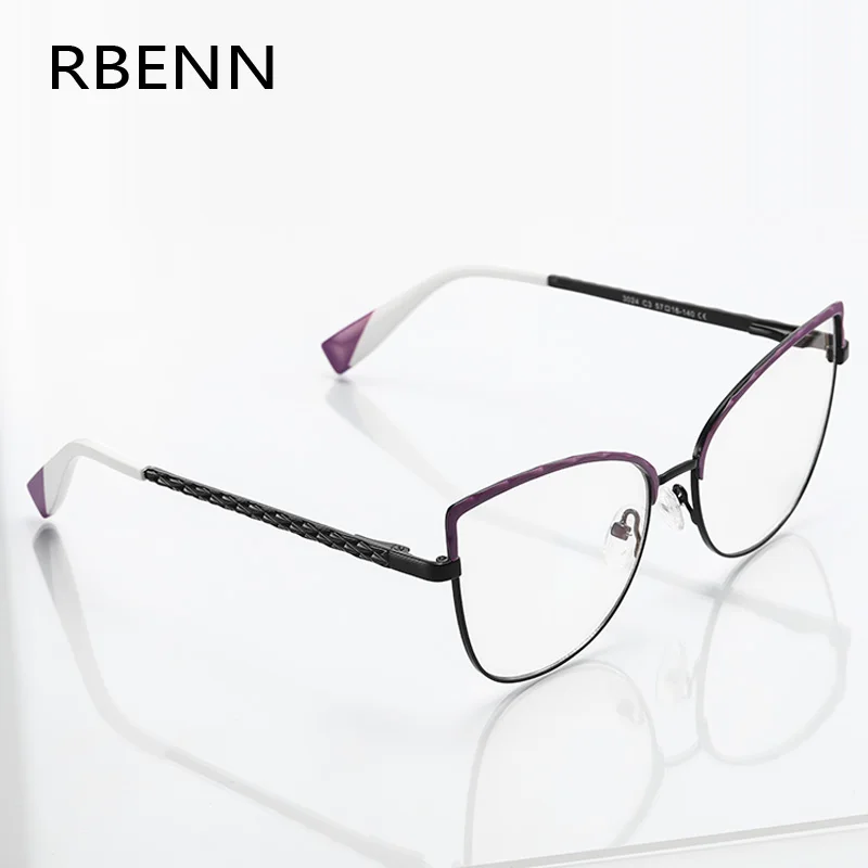 Очки RBENN с большой оправой для чтения кошачий глаз женские, с металлической оправой, с защитой от сисветильник, с компьютерным ридером для женщин, с линзами CR-39