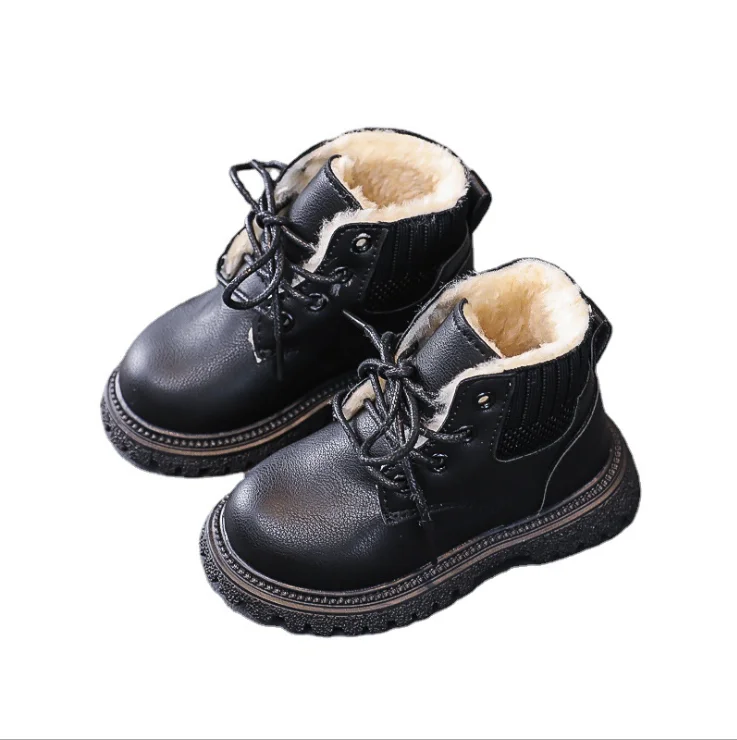 Зимняя детская кожаная обувь, зимние ботинки для мальчиков, плюшева...