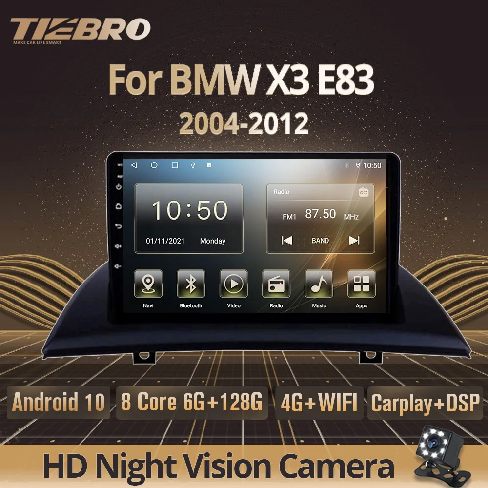 Автомагнитола Tiebro, 2DIN, Android 10 для BMW X3 E83 2004-2012