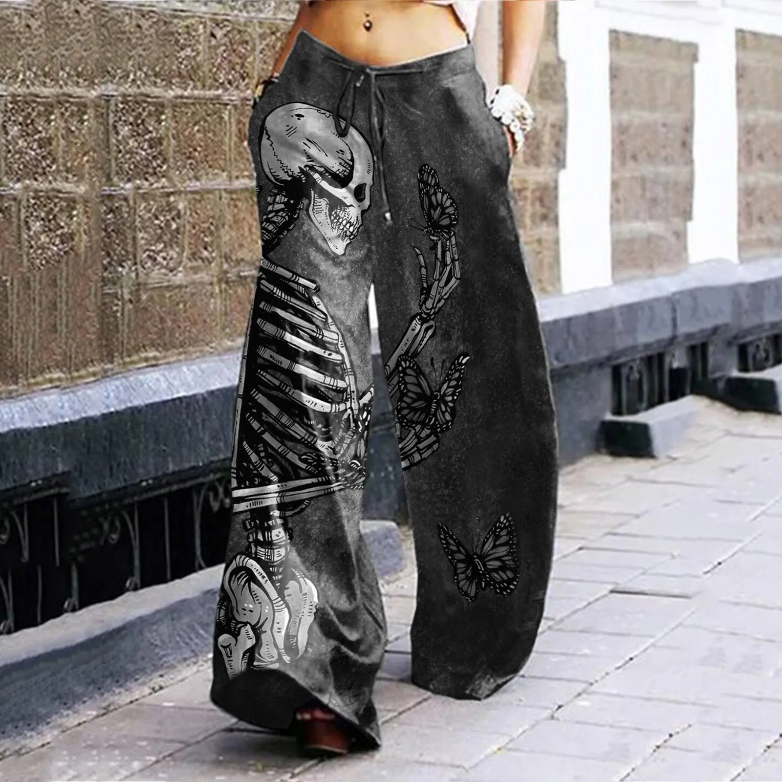 Женские брюки в стиле Хэллоуин с принтом черепа