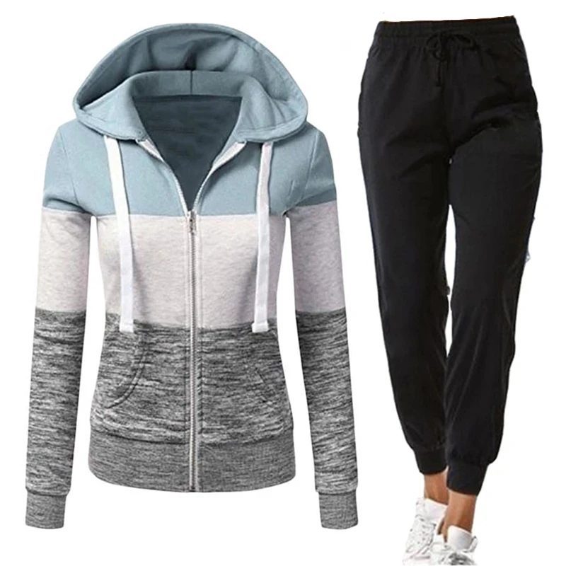 Женский спортивный костюм из 2 предметов, толстовка на молнии и брюки в стиле пэчворк, осенне-зимний спортивный костюм