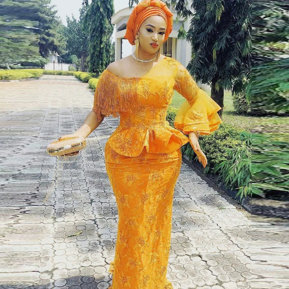 Женское вечернее платье с баской Aso Ebi, кружевное платье-Русалка с баской и длинным рукавом, платье для выпускного вечера