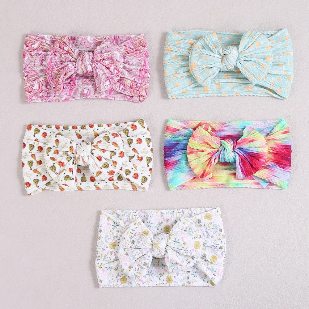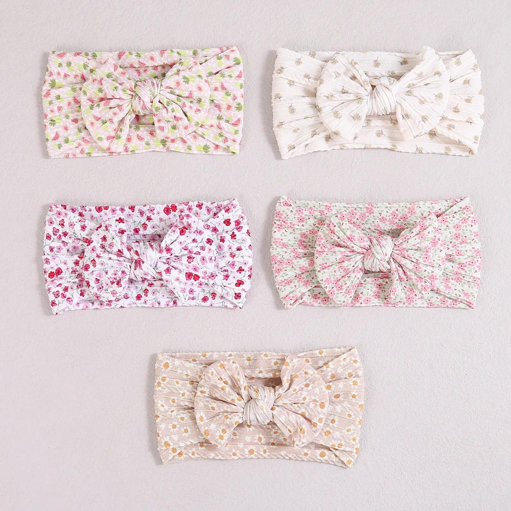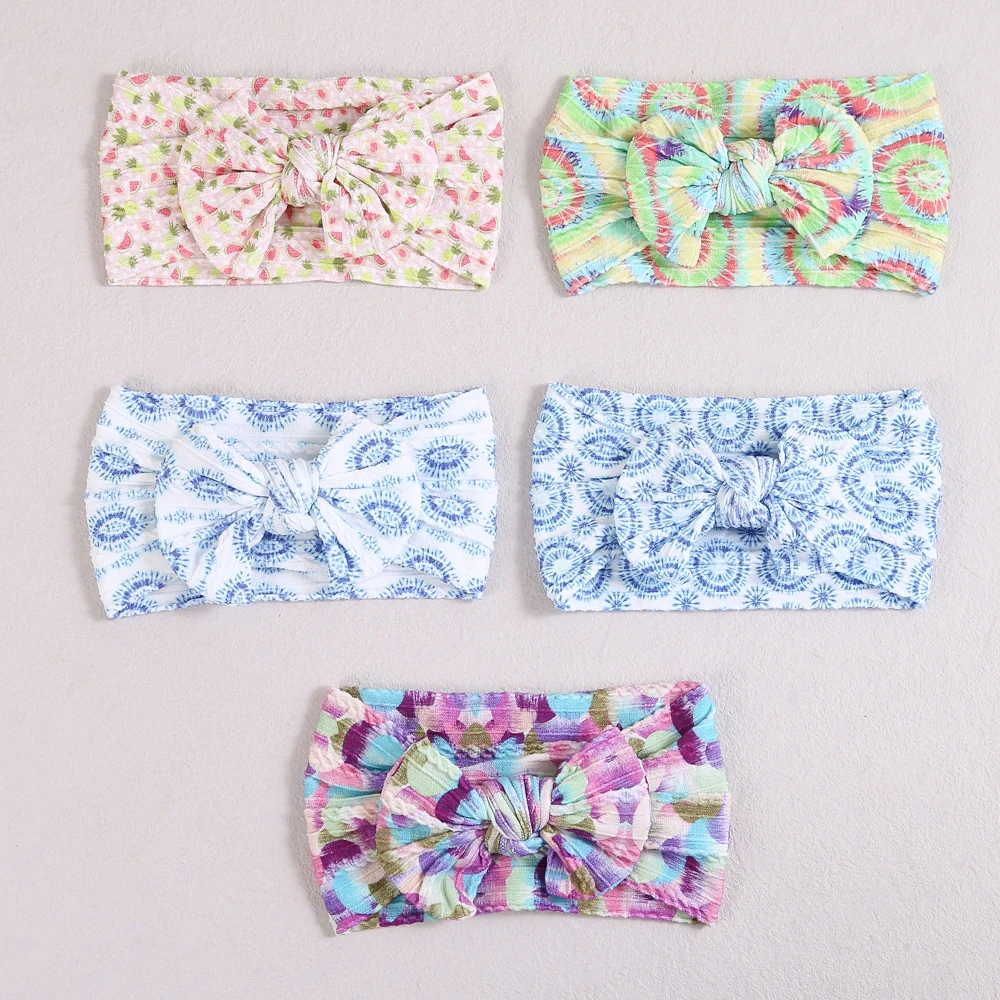 Детская нейлоновая повязка на голову с цветочным принтом, 20 шт.лот