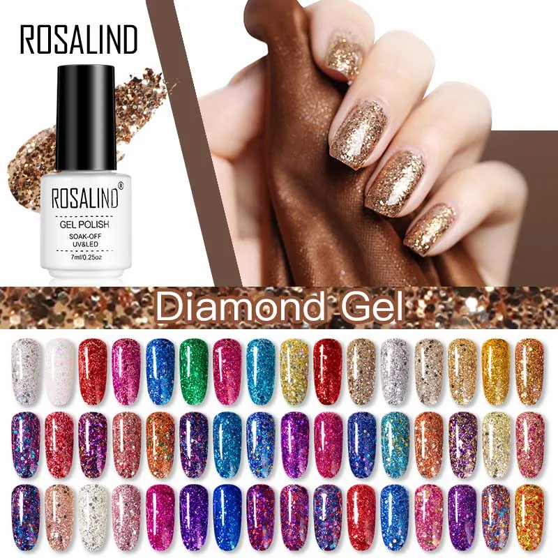 Гибридные Лаки Rosalind, Алмазный мигающий лак для ногтей для маникюра, искусства, полуперманентный гель для УФ-лампы, Топ 7 мл