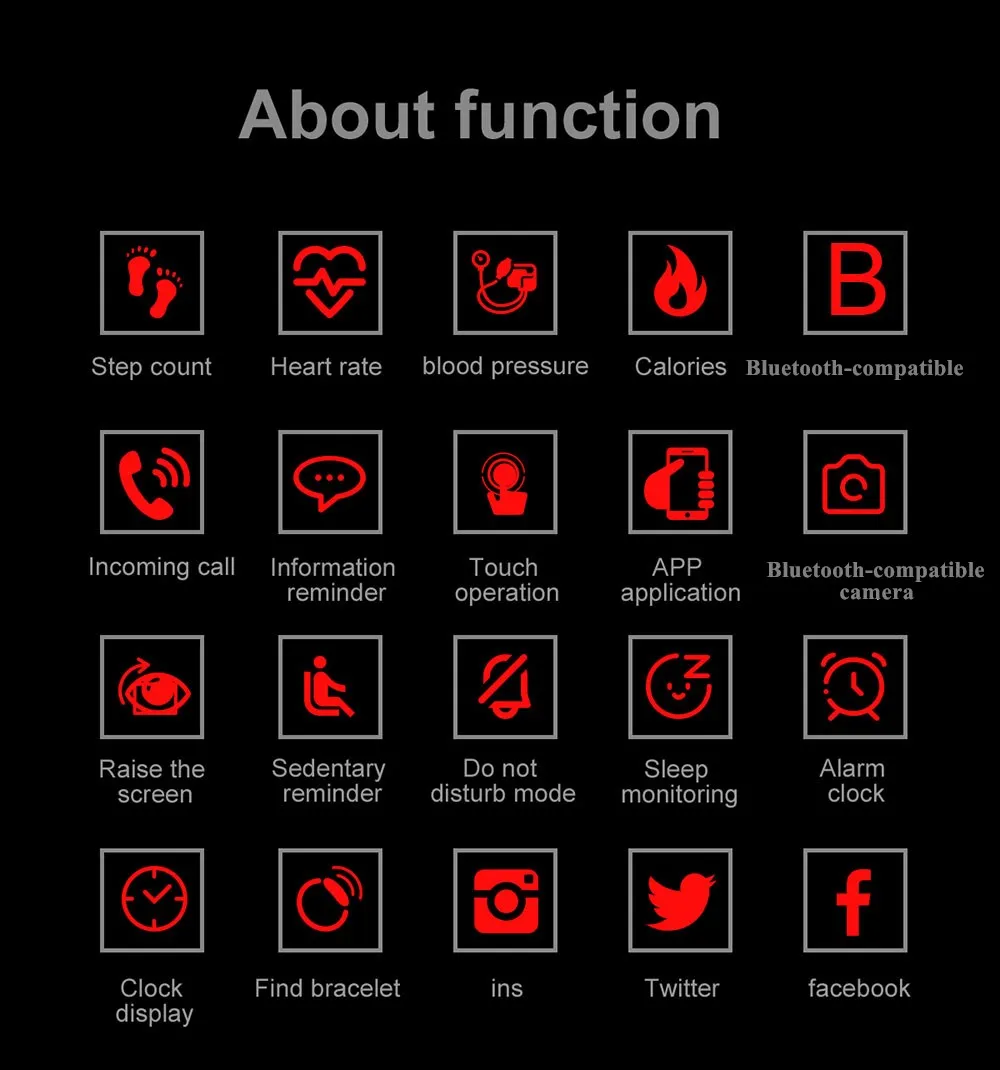 Особенности:Name Название продукта: спортивные часы 115 plusWeight Вес: 28 гUses использование: мониторинг сердечного ритма/счетчик шагов/напоминание о сообщениях/Обнаружение снаColor Цвет: черный/красный/зеленый/синий/фиолетовыйAPP приложение: Android 5,0 или выше, для IOS 9,0 или выше✦ Ремешок: силиконПосылка включает в себя:1 1 спортивные фитнес-часы✦ 1 Руководство пользователя1 1 ящик для храненияОписание:Умный помощник по жизни-часы могут контролировать шаги, калории, частоту сердечных сокращений, расстояние, качество сна и т. Д. Дня. В то же время он может подключаться к смартфону для просмотра информации, удаленно фотографировать, извлекать мобильные телефоны и другие продуманные и удобные функции, чтобы сделать вашу жизнь более удобной.Мониторинг сердечного ритма-оснащен оптическим датчиком сердечного ритма на запястье, введите интерфейс для тестирования сердечного ритма в течение нескольких секунд, Отобразите результаты измерения сердечного ритма.Несколько спортивных режимов-телефон имеет множество спортивных режимов, встроенных, нет необходимости добавлять на телефон, носить браслет непосредственно для физических упражнений, браслет может записывать все ваши спортивные данные.