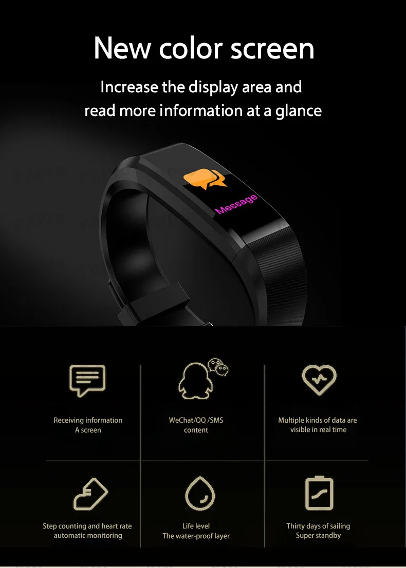 115Plus спортивные Смарт-часы фитнес-трекер Мониторинг здоровья пульса кровяного давления шагомер мужской смарт-браслет водонепроницаемый браслет