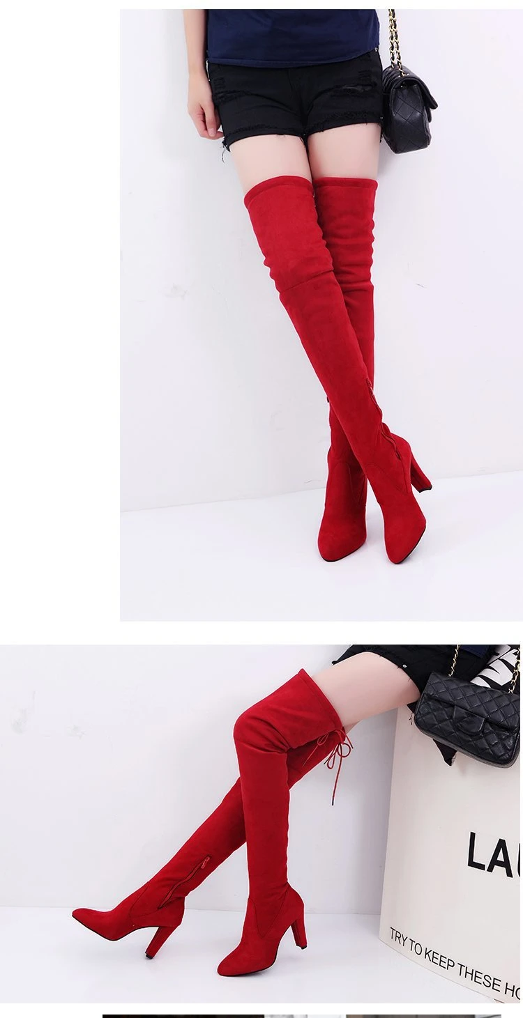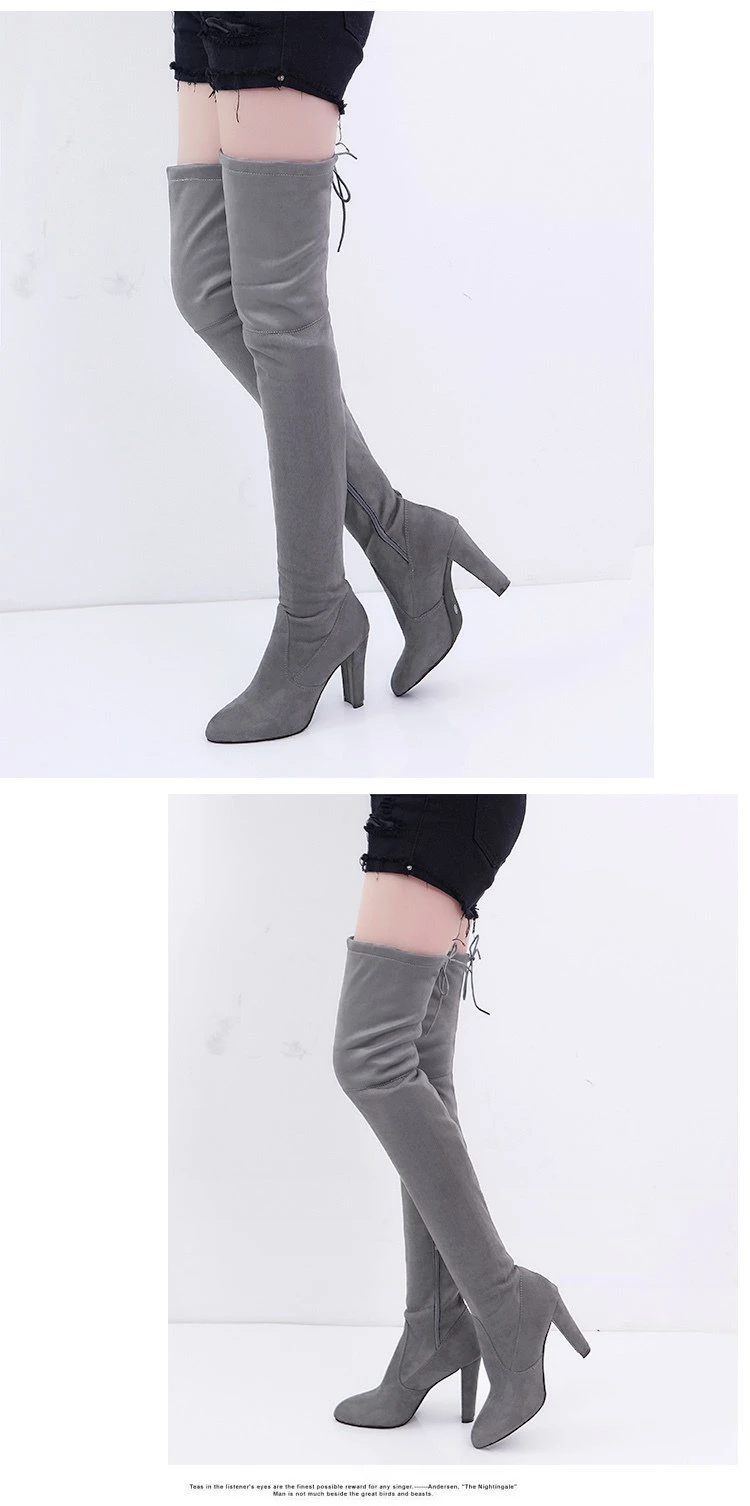 Высокие сапоги до бедра из искусственной замши осенне-зимняя обувь ...