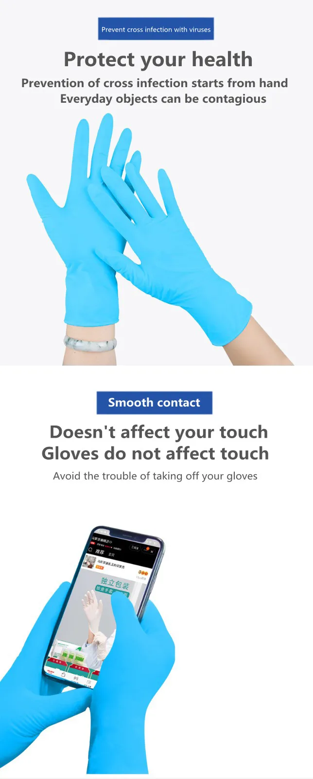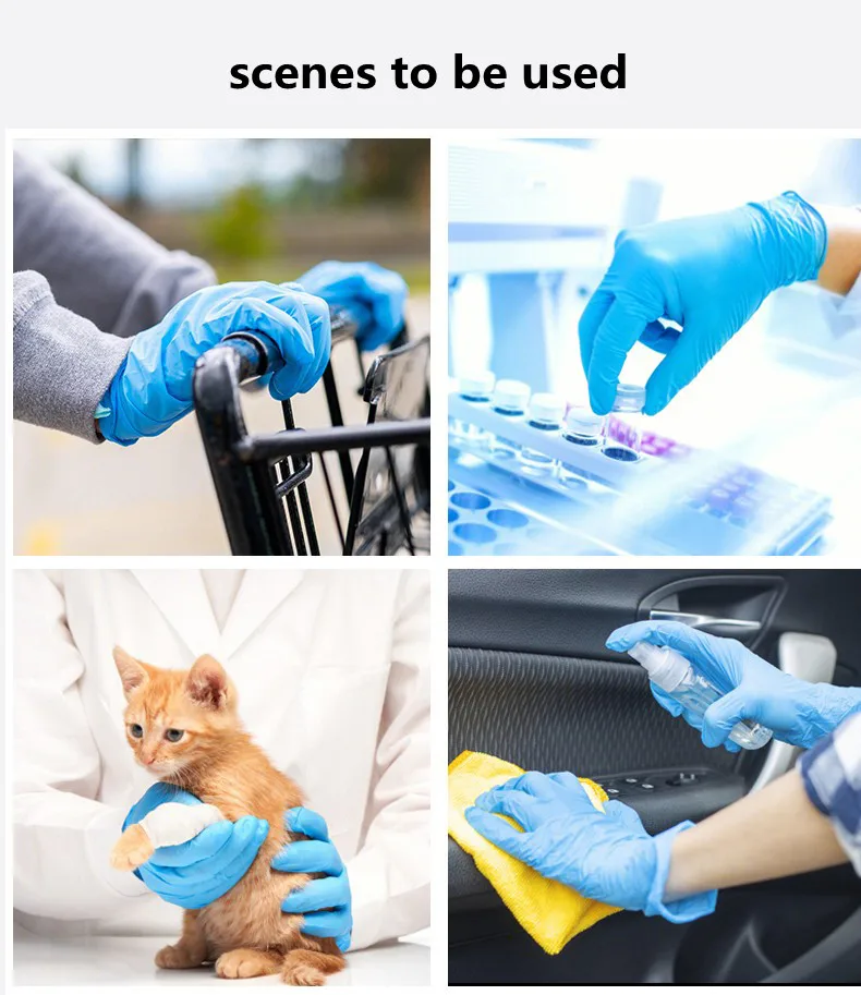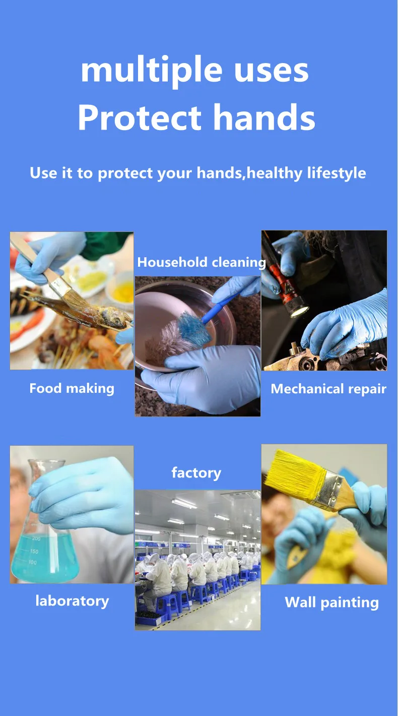 Синие одноразовые перчатки, высокоэластичные плотные перчатки без пудры, нитриловые синтетические защитные перчатки для уборки кухни Wenxiu
