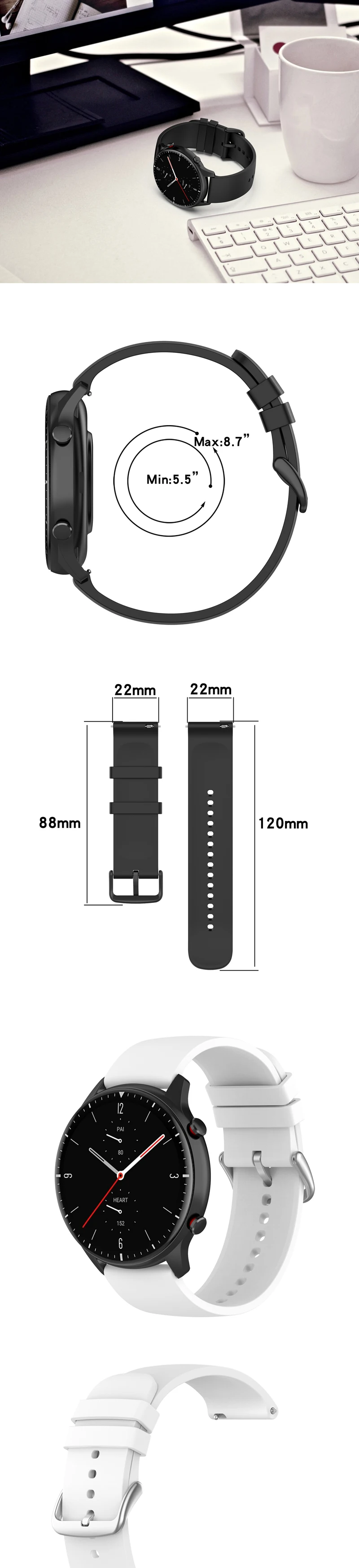 22 мм мягкий силиконовый спортивный ремешок для часов Huami amazfit GTR e/2e/amazfit GTR 47 мм Smartwatch для Huami AMAZFIT 2 stratoS BeltСпецификация:Полоса пропускания: 22 ммМатериал: Изготовлен из высококачественного силикона, безопасен для здоровья и окружающей средыКомпрессионная формовка, прочная и долговечнаяМатериал: силиконМягкость умеренная, носить очень удобноЛегко регулировать длину, чтобы соответствовать вашему запястьюСовместимость с:22 мм круглый силиконовый ремешок Совместимые модели:Huami amazfit GTR 2e,Huami amazfit GTR 2,Huami AMAZFIT 3 stratoS,Huami amazfit GTR 47 мм,Huami amazfit pace,Huami AMAZFIT stratos,Huami AMAZFIT 2 stratoSHuami ZEPP ZСпортивные часы Xiaomi MIЦвет часов Xiaomi MI,Xiaomi Haylou RT LS05SChuangmi YAMAY SW022Chuangmi Imilab kw66Примечание: подходит для умных часов с диаметром 22 ммПосылка:1 ремешок для часов (часы в комплект не входят)