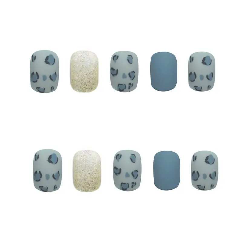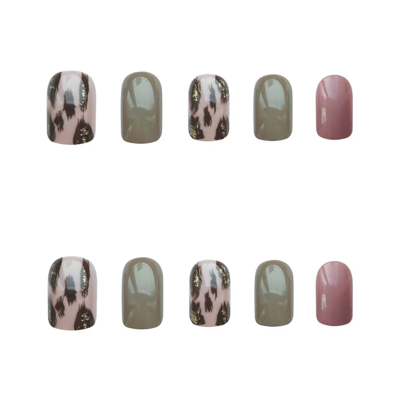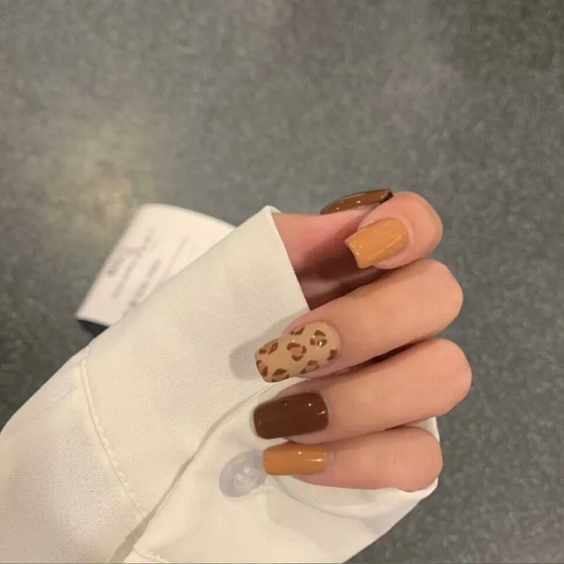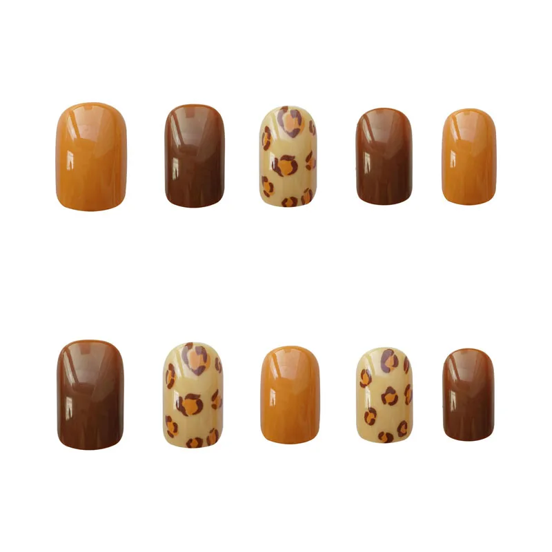 24 шт., Модные леопардовые накладные ногти с круглой головкой, смешанные, черные, карамельные, полное покрытие, накладные ногти с клеем, макияж для ногтей, инструменты для маникюра