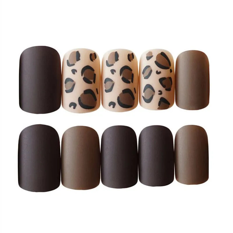 24 шт. Модные леопардовые накладные ногти с круглой головкой смешанные накладные ногти с полным покрытием Черная Карамель с клеем макияж для ногтей инструменты для маникюра