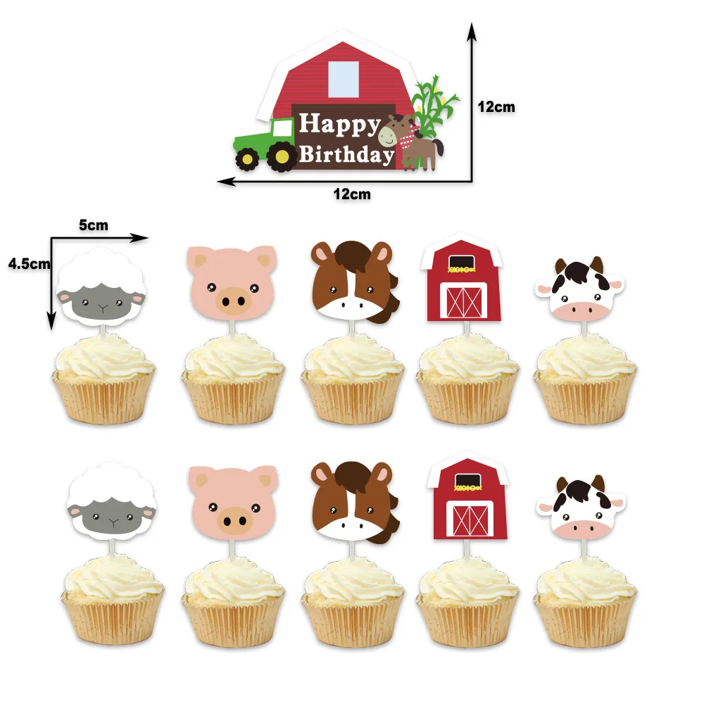 26 шт фермы тематическая Бумага торт топпера, баннер фермы Животные...