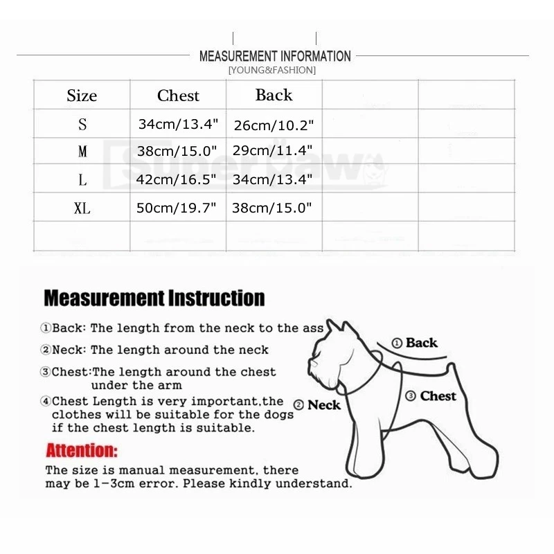 2. Для двух ног, пожалуйста, обратите внимание на обхват груди, и для четырех ног, должны соответствовать обхвату груди и длине спины.