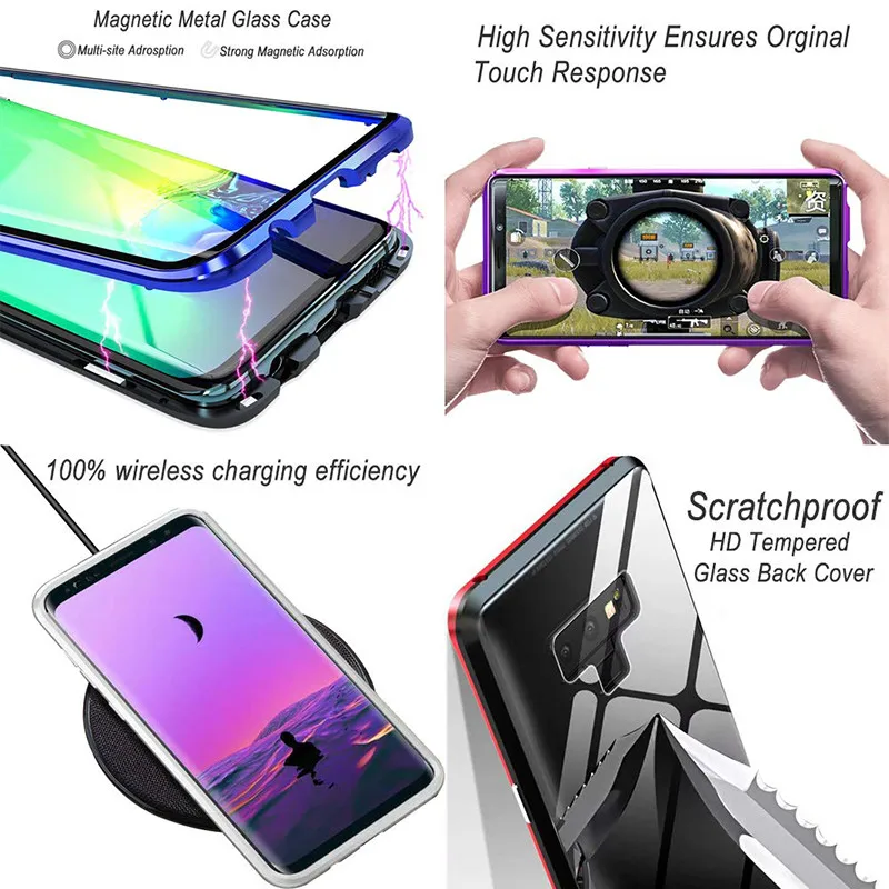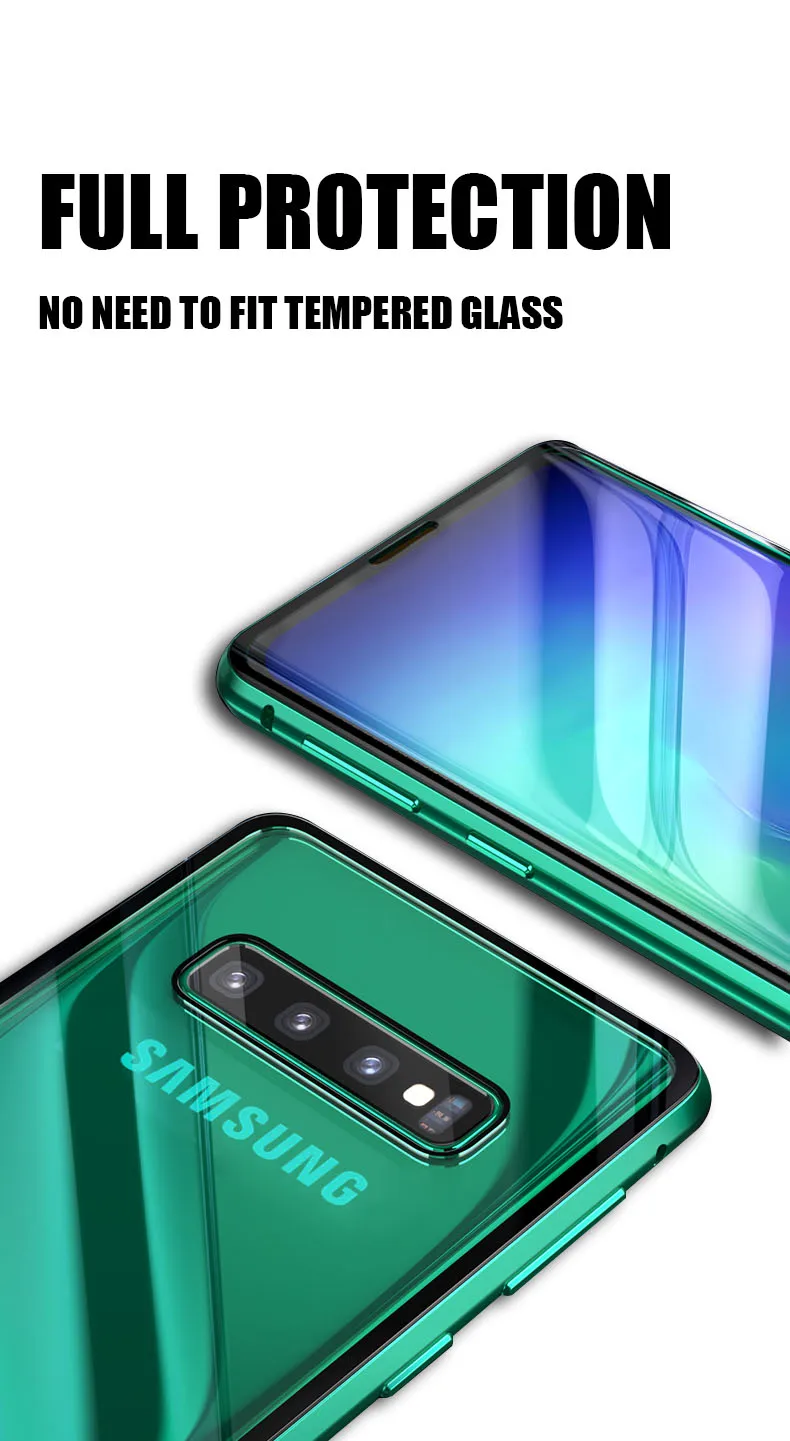 Двухсторонний стеклянный магнитный металлический чехол для Samsung Galaxy S8 S9 S10 Plus S20 Ultra Note20 10 A10 A50 A70 A11 A51 A71 A91 M31, чехол