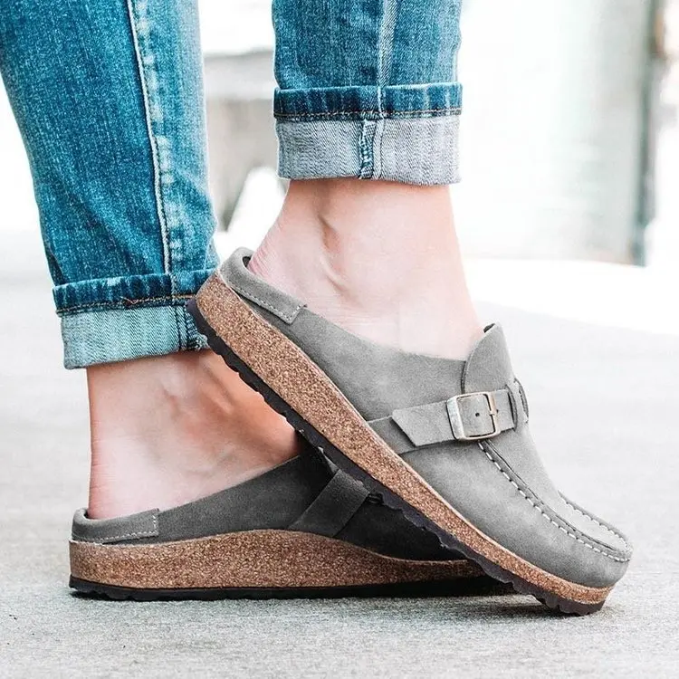 Женские сандалии без шнуровки, Летние удобные кожаные замшевые туфл...