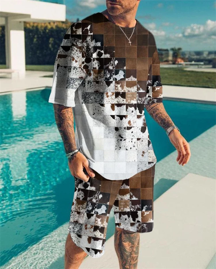 Футболка и шорты мужские с 3D-принтом, спортивная одежда с круглым ...