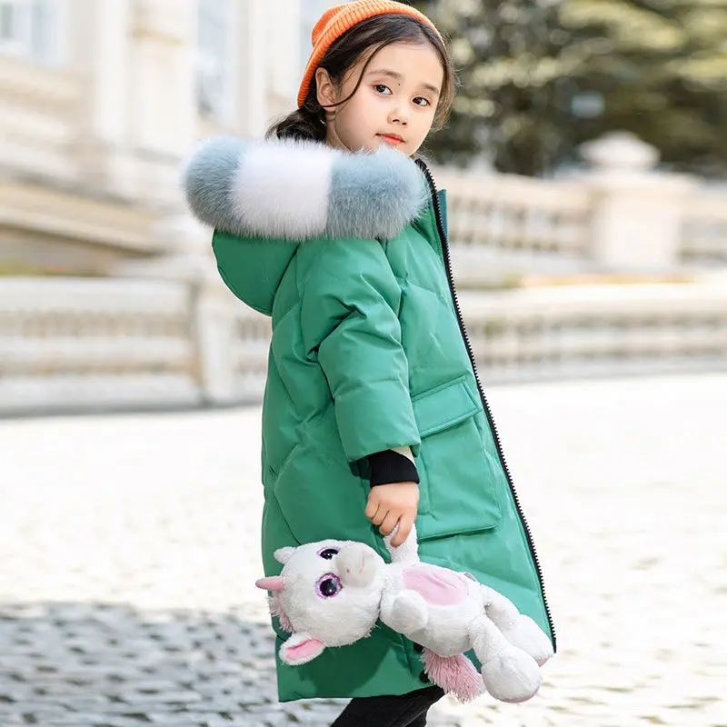 Куртки для девочек, теплые и ветрозащитные зимние длинные пуховики,...