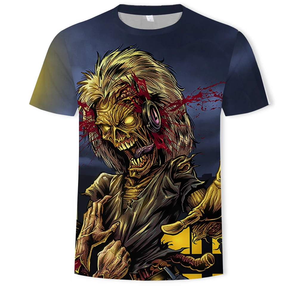Футболка мужская с 3D принтом черепа хеви-метал, модная тенниска в ...