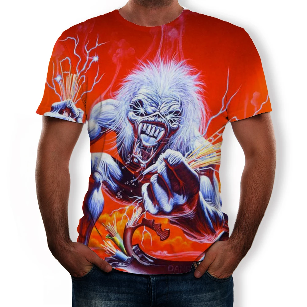 Футболка мужская с 3D-принтом черепа, тенниска из тяжелого металла,...