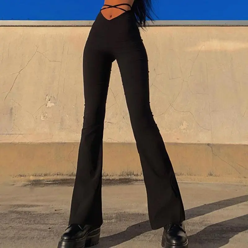 Повседневные облегающие брюки-клеш Giyu с высокой талией для женщин, Осенние сексуальные черные длинные брюки, женские обтягивающие леггинсы, уличная одежда, новинка