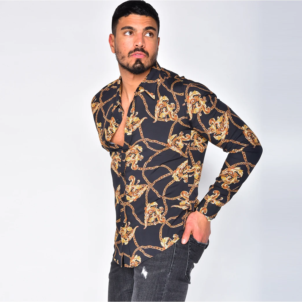 Мужская Осенняя рубашка с длинным рукавом и принтом, в европейском ...