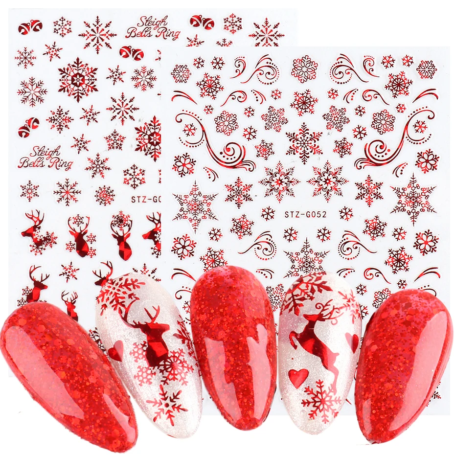 Рождественские наклейки для ногтей, снежинки, наклейки для ногтей, наклейки из розового золота, красного и зеленого цветов, зимнее Новогоднее украшение для ногтей