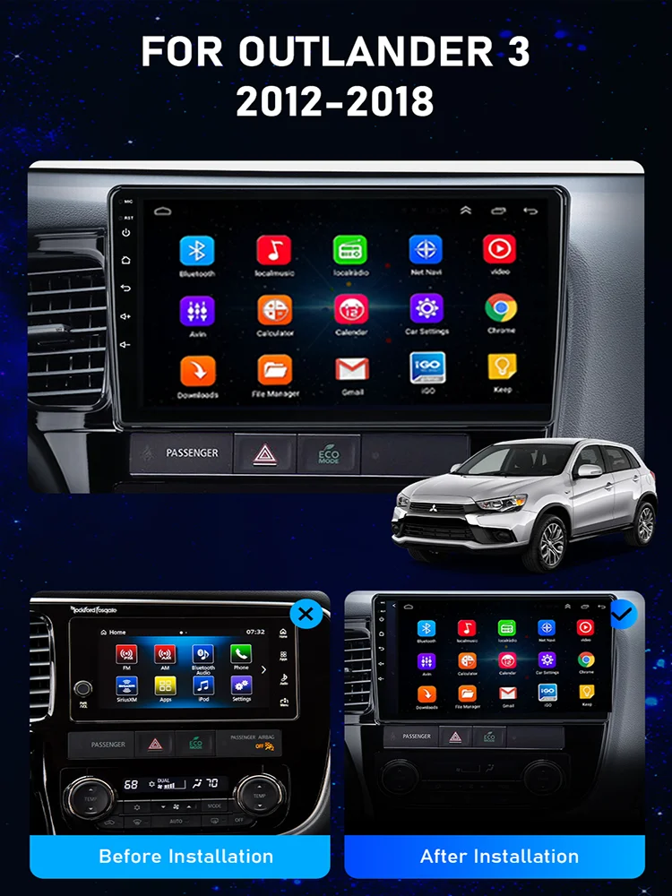 Автомагнитола DSP Android 10 для Mitsubishi Outlander 3 2012-2018, автомобильное радио, аудио, магнитофон, мультимедийный DVD-плеер, GPS-навигация