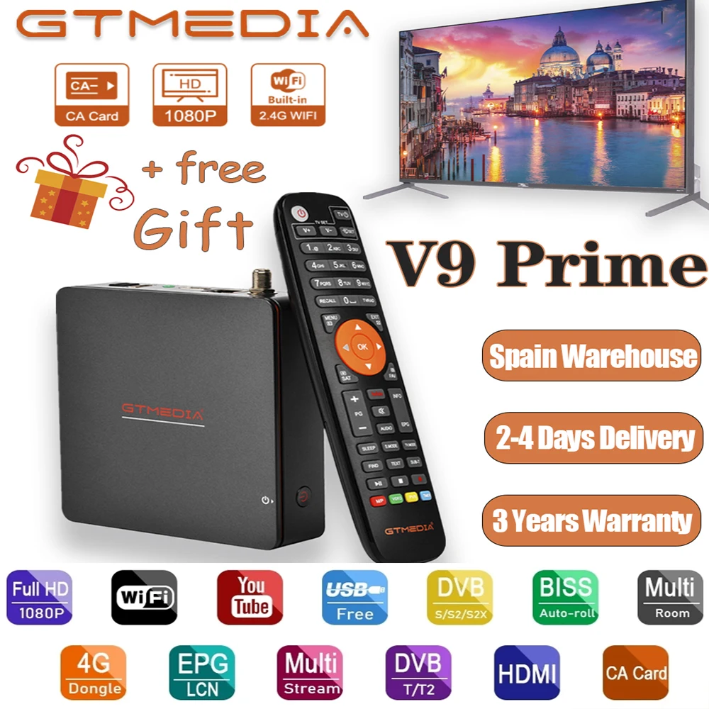 Спутниковый ресивер GTMEDIA V9 Prime H.265 DVB-S2XS2, встроенный Wi-Fi декодер Freesat, обновленный GT V9, супер запас в Испании